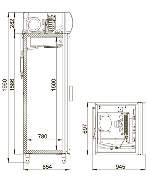 Шкаф холодильный Polair DP107-S имеет прочный цельнозаливной корпус из стали с полимерным покрытием. Конструкция герметична, оснащена эластичными уплотнителями с магнитными вставками. Динамическая система обеспечивает равномерное охлаждение продуктов во всем полезном объеме агрегата. Модель имеет электронное управление, клапан Шредера, механический замок. Действует система автоматической оттайки с испарением конденсата. Установлены ПЭН обогрева дверного проема и ПЭН обогрева трубки слива конденсата. Ножки регулируются по высоте, компенсируя неровности пола. Панель-канапе и внутреннее пространство с подсветкой. Алюминиевая рама двери разборная, позволяет заменить стеклопакет. Техника рассчитана на работу при температуре окружающей среды до +32 °С и влажности воздуха до 60 %.